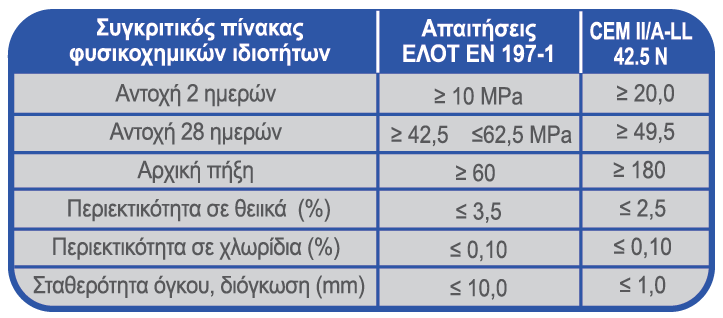 Όταν οι κατασκευαστικές απαιτήσεις είναι υψηλές το τσιμέντο τύπου CEM II/A-LL 42.5Ν αποτελεί την σίγουρη επιλογή. Κατάλληλο για παραγωγή: